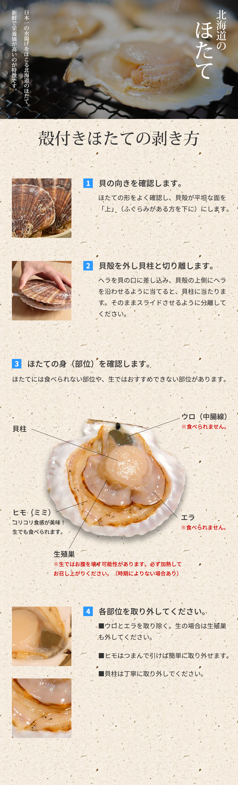 北海道産のホタテを全国にお届けします!肉厚で、濃厚なうまみと甘みが特徴です。クセの少ないホタテのうまみはどんな料理にも合います!